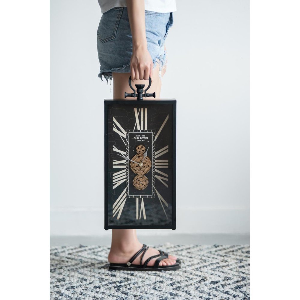 This 10-inch black and gold metal and glass analog vintage style crackle wall clock includes three moving hands on the face that move smoothly to indicate the hour, minute and seconds. Features a practical, straight-edged rectangle shape.. The clock face not only looks good but is beautiful and uniquely made from glass. Elevate the decor of any room in your house. With its unique design and practical purpose, this clock will add flair to your home while also acting as an essential tool. 20.9-inch H x 9.8-inch W x 3.1-inch D