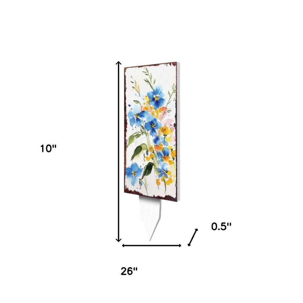 10" Blue White And Yellow Solid Wood Wildflowers Garden Stake