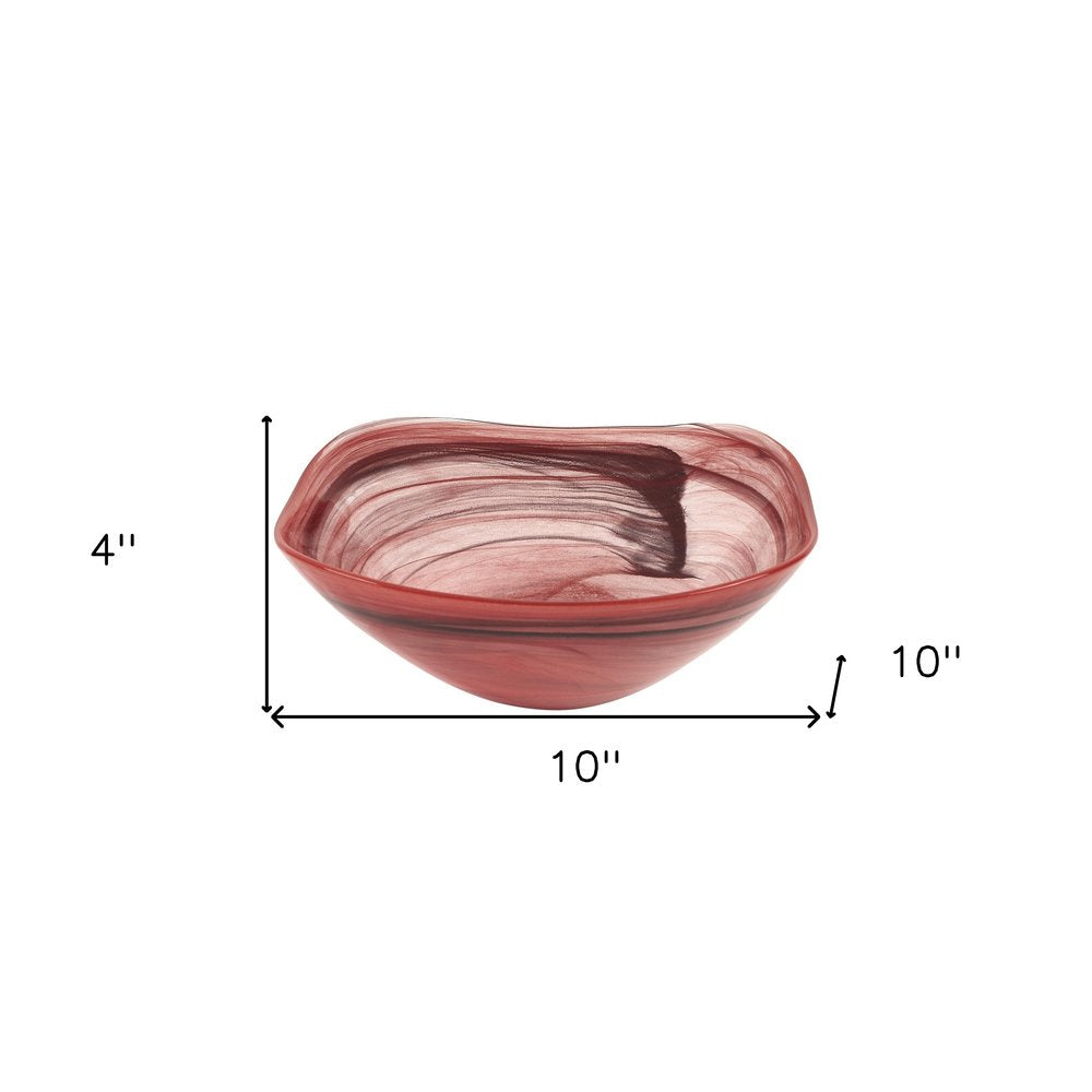 The 10-inch red and white alabaster glass square salad bowl is a stunning addition to your dining collection. This salad bowl features a modern aesthetic with its milky reddish brown and white color combination, making it an eye-catching centerpiece for any space. European handcrafted from high-quality alabaster glass, it showcases exceptional artistry and attention to detail. Designed in a soft corner square shape, it not only offers a generous capacity of 32 ounces but also enhances the presentation of whatever you choose to fill it with; or creates a striking decorative display on its own. 4-inch h x 10-inch w x 10-inch d.