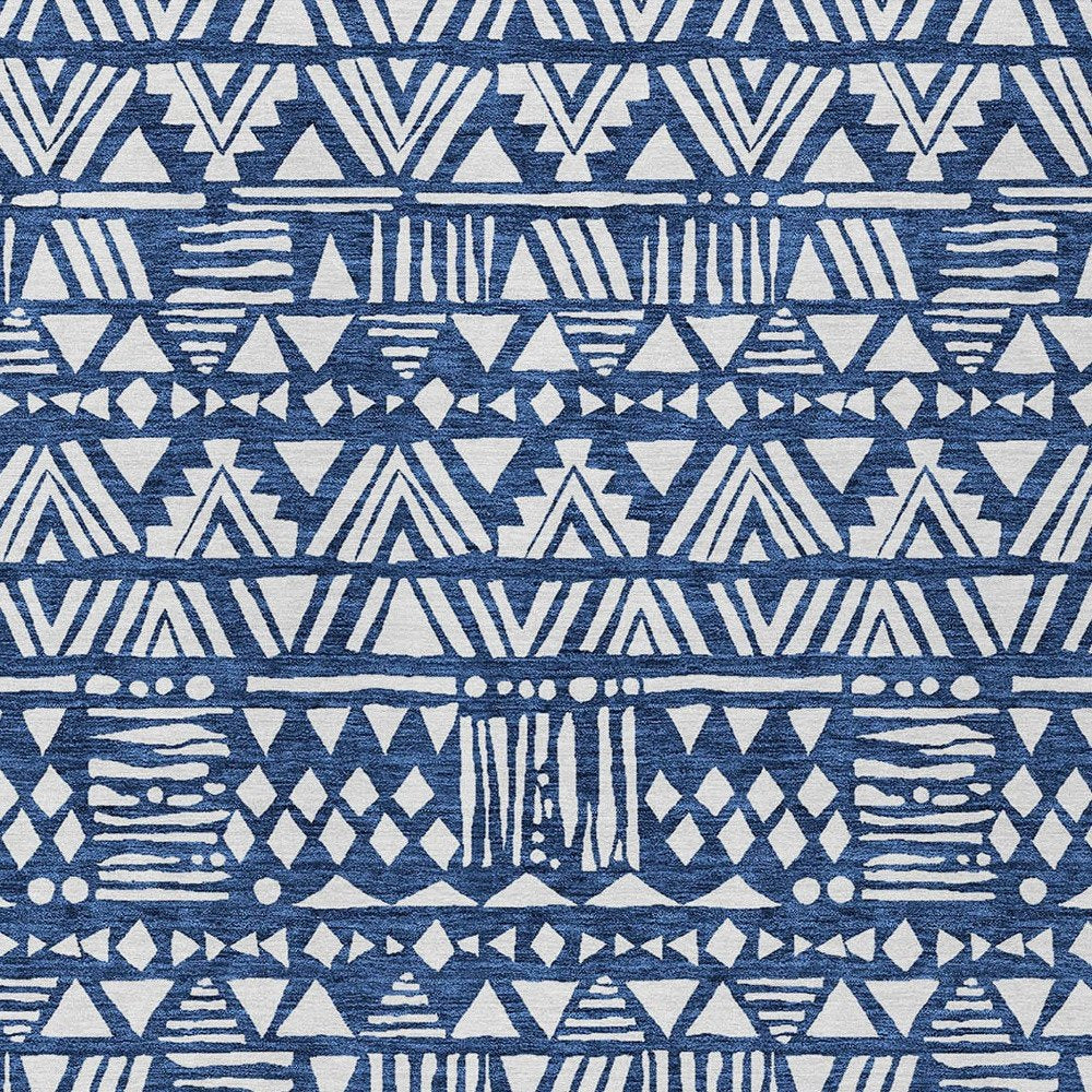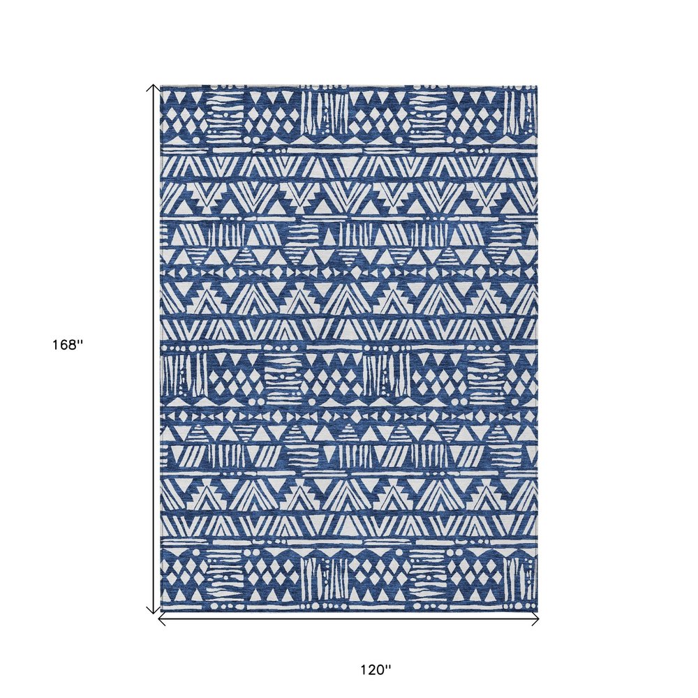 10' X 14' Navy Blue And Ivory Southwestern Washable Indoor Outdoor Area Rug