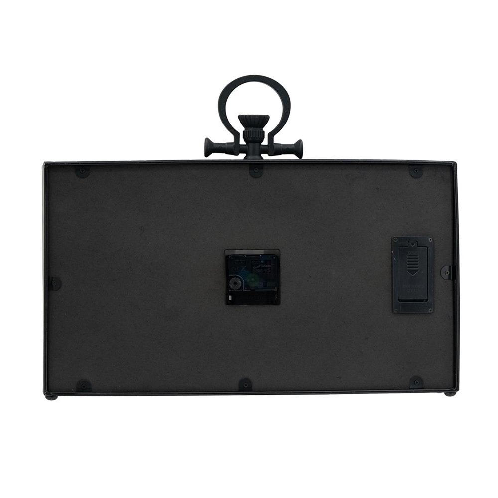 This 13-inch black and gold metal and glass analog vintage style crackle wall clock includes three moving hands on the face that move smoothly to indicate the hour, minute and seconds. Features a practical, straight-edged rectangle shape.. The clock face not only looks good but is beautiful and uniquely made from glass. Elevate the decor of any room in your house. The eye-catching makeup of this clock will ensure that you never run late again. 17.7-inch H x 13-inch W x 3.1-inch D