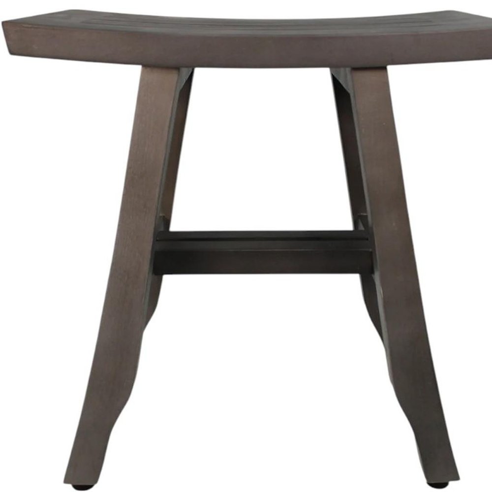 This 18" hotel quality, weathered gray solid teak wood shower bench features an Asian influence and contemporary design flair. This stool can be used indoors or outdoors as the construction from genuine teak wood makes it naturally resistant to moisture and bacteria, able to withstand wet and humid environments. Add to your shower, bathroom, or outdoor space for a spa vibe that is both good looking and practical. 17.5" x 17.5" x 12"