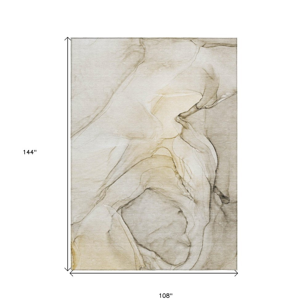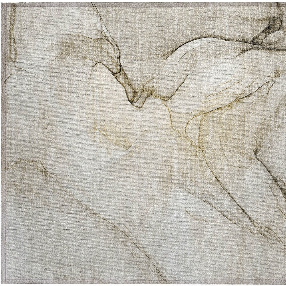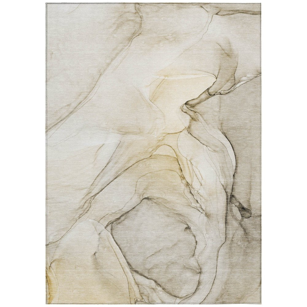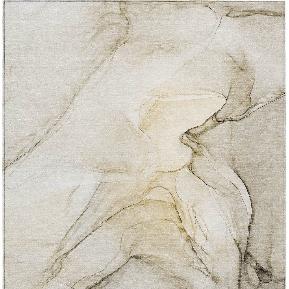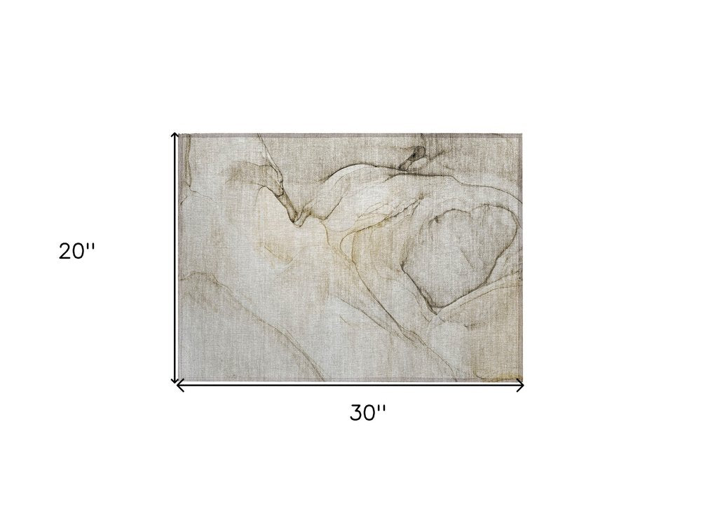 2' X 3' Beige and Gray Abstract Washable Non Skid Indoor Outdoor Area Rug