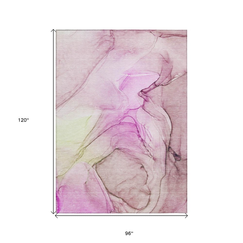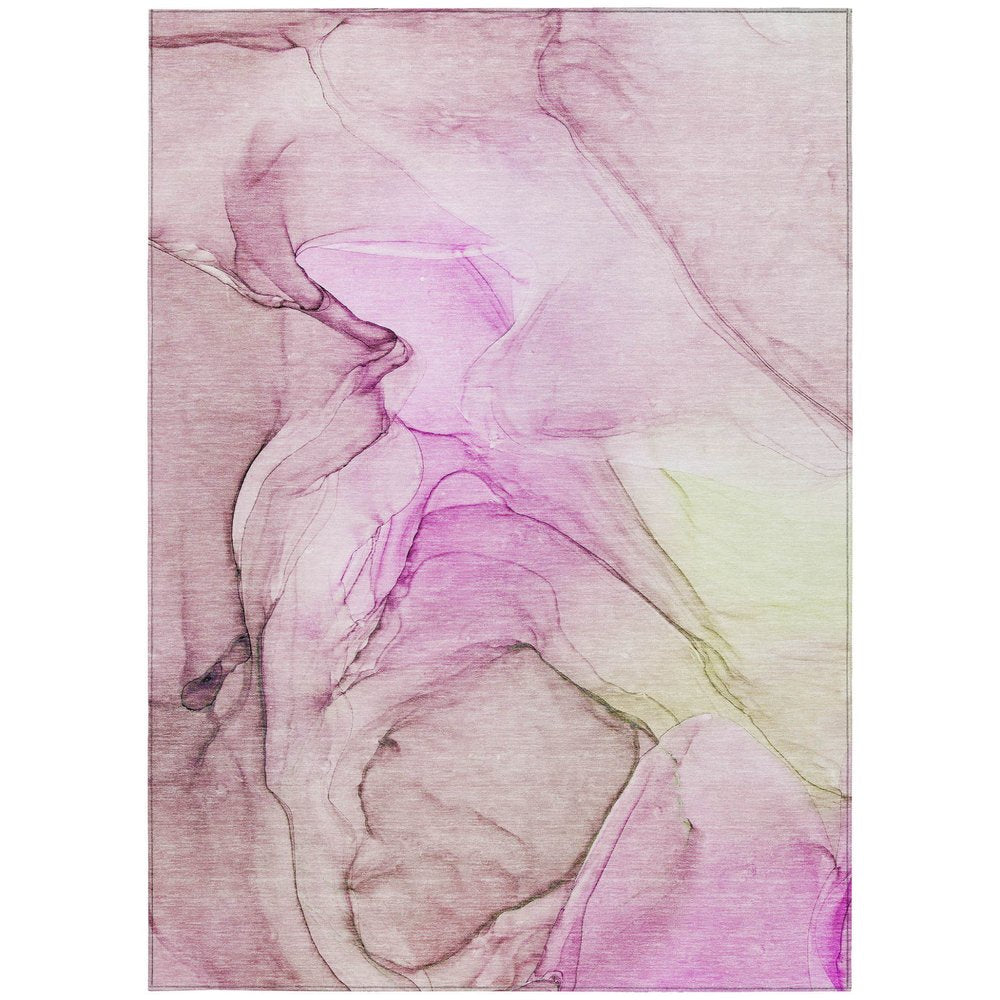 2' X 3' Pink Abstract Washable Non Skid Indoor Outdoor Area Rug