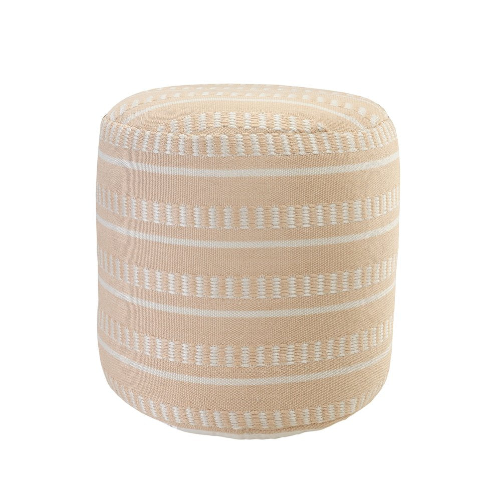 Practicality and fashion mix together with this handy 20" brown polyester round striped indoor outdoor pouf ottoman. Add chic style to your space with this fun pouf that not only looks cool but can be a great footrest or extra seat when needed. Expertly upholstered with padding and soft 100% polyester in a striped pattern, this ottoman is as comfortable as it is good looking. Easy to blend into most any room, an ottoman is a way to add a good-looking accent to your space that can also be practical and useful. . 20" H x 20" W x 20" D