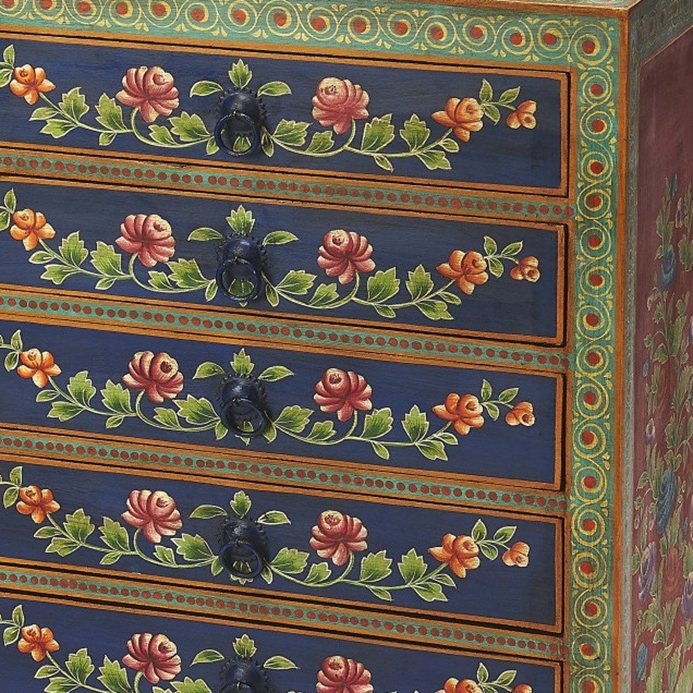 This 21-inch blue and green solid wood seven drawer standard chest is a practical and good looking accent for your bedroom storage and organizational needs. The space saving design of this standard chest makes it a great choice for space challenged spaces or small walls within your room. Loaded with capacity, this piece is equipped with seven easy open drawers for practical and good looking clothing storage. This dresser is built to last from high quality solid wood,. 34-inch H x 21-inch W x 12-inch D