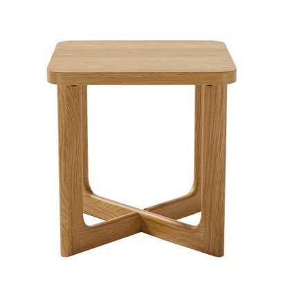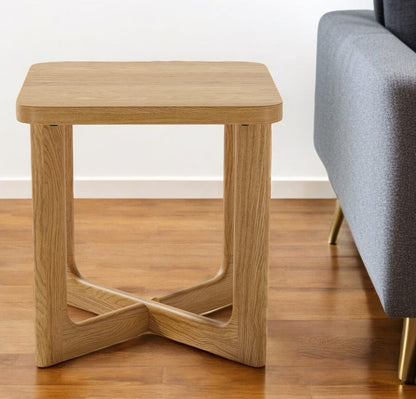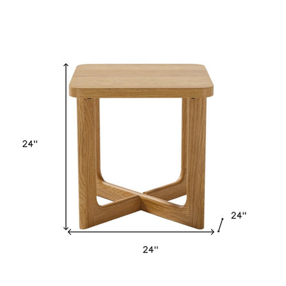 Optimize your space and add some charm to your room with the 24-inch natural solid wood square cross legs end table. This table is made from solid oak wood in a natural color throughout the base and top. Side tables are a great way to flank your sofa, use as an accent next to your favorite chair, or can even be used bedside. This versatile table is a great accent for most any room. 24-inch h x 24-inch w x 24-inch d.