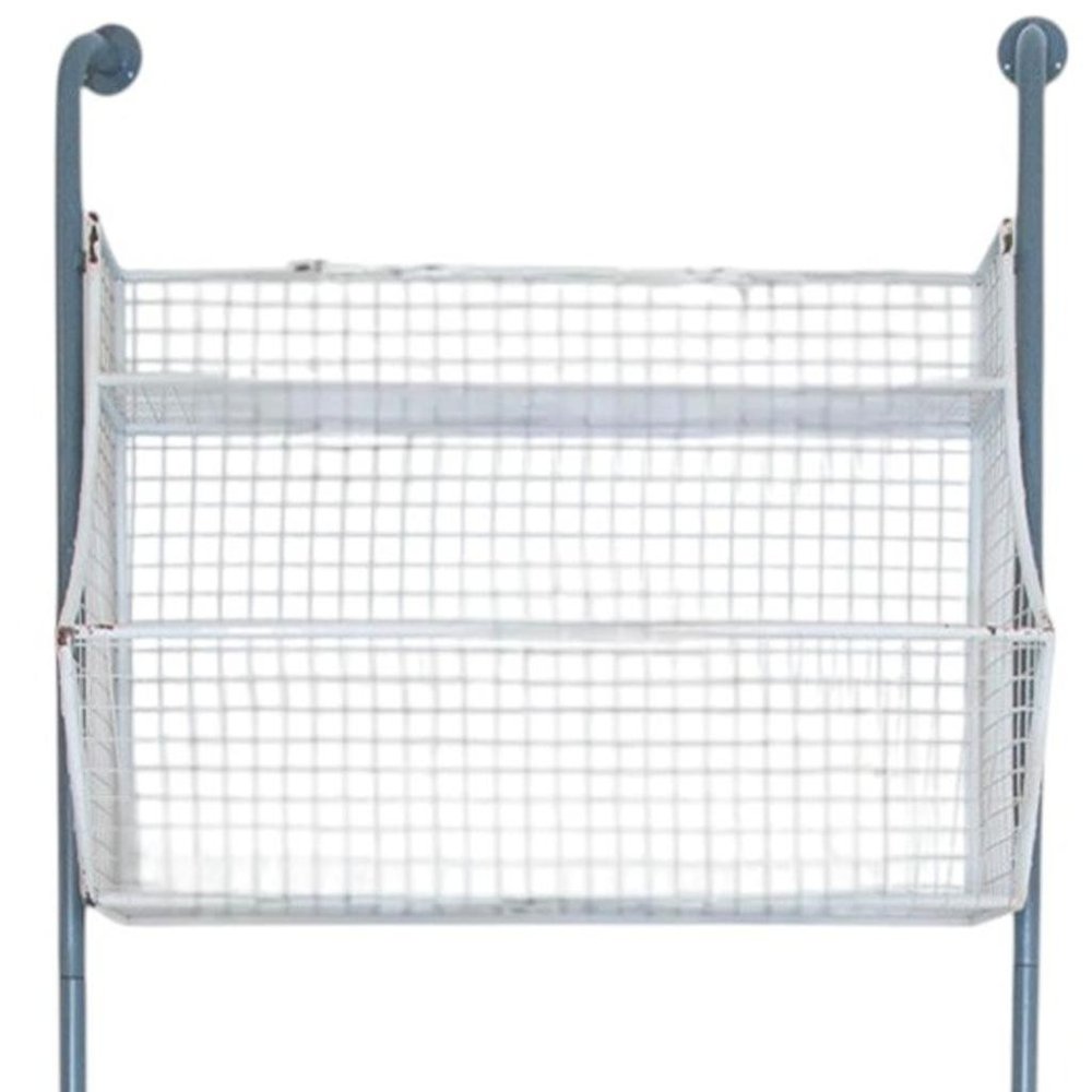 24" White And Gray Metal Baskets Wall Mounted Cubby Shelf