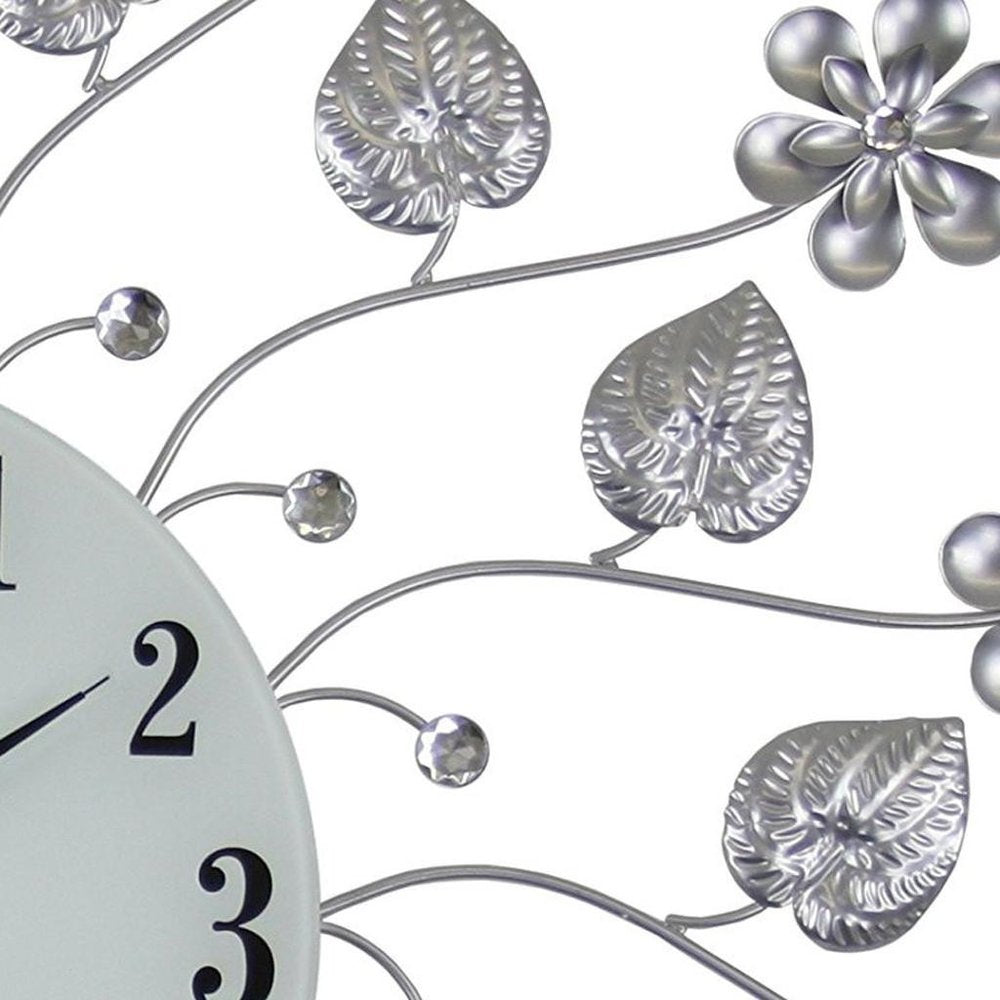 Keywords | analog floral round wall clock, floral round wall clock, round wall clock, metal glass silent analog floral, silver white black metal glass |