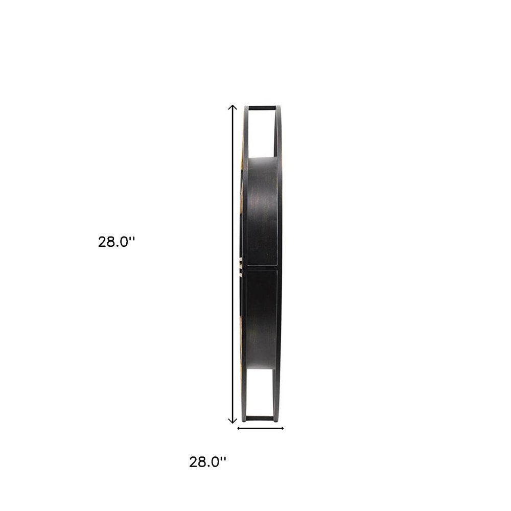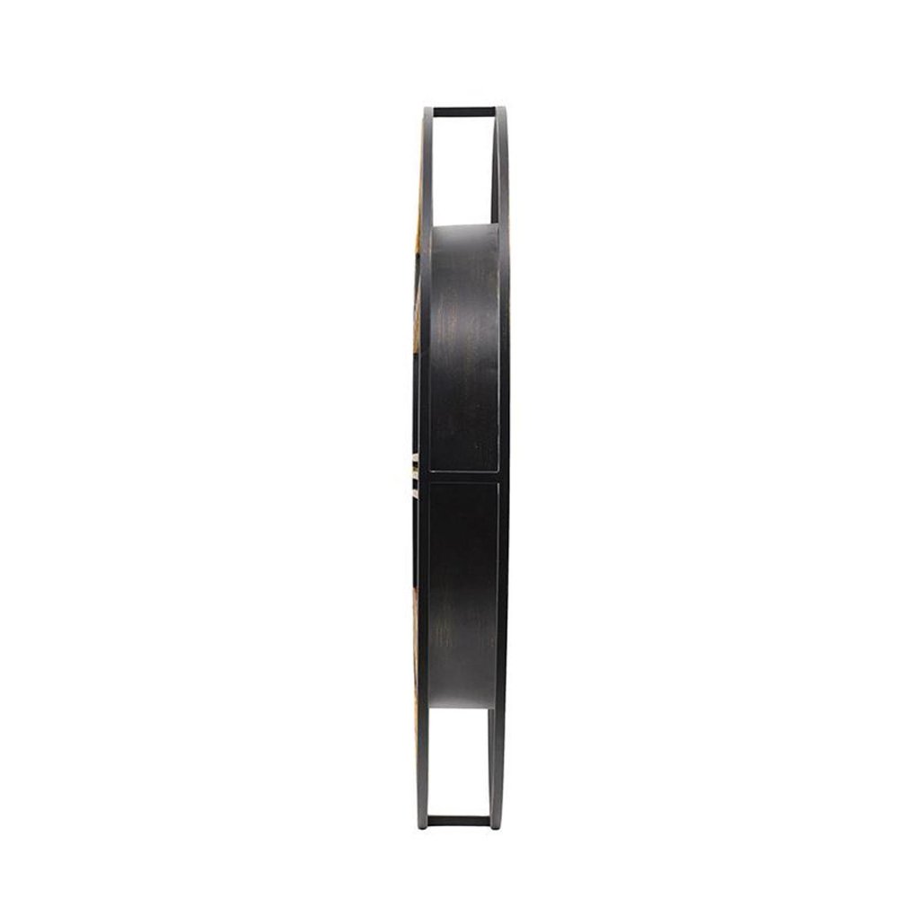 This 28-inch circle copper metal and glass analog exposed gear wall clock includes three moving hands on the face that move smoothly to indicate the hour, minute and seconds. The circle shape of this clock will bring a sense of wholeness to your home. The clock face not only looks good but is beautiful and uniquely made from glass. Elevate the decor of any room in your house. The eye-catching makeup of this clock will ensure that you never run late again. 28-inch H x 28-inch W x 3.5-inch D