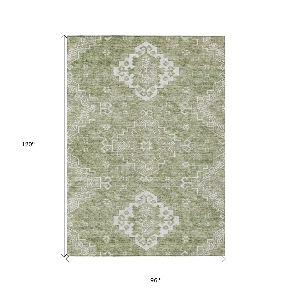 3' X 5' Artichoke Green Beige And Ivory Medallion Washable Indoor Outdoor Area Rug