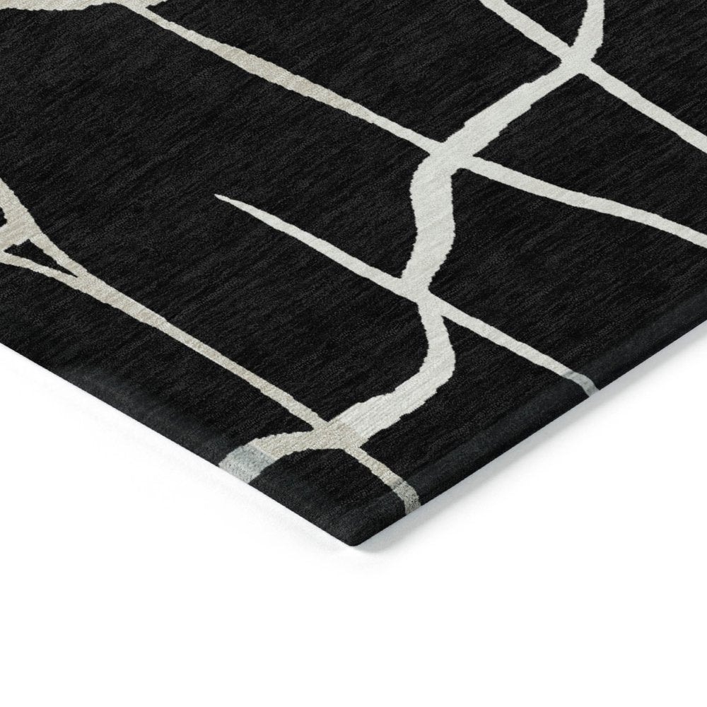 3' X 5' Black And Beige Abstract Washable Indoor Outdoor Area Rug