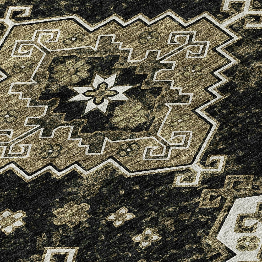 3' X 5' Black Ivory And Taupe Medallion Washable Indoor Outdoor Area Rug