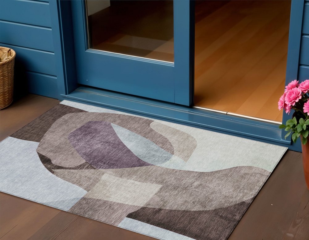 3' X 5' Brown And Taupe Abstract Washable Indoor Outdoor Area Rug