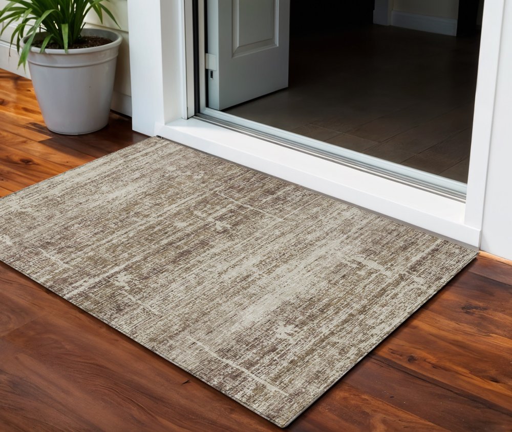 3' X 5' Brown Beige And Taupe Abstract Washable Indoor Outdoor Area Rug