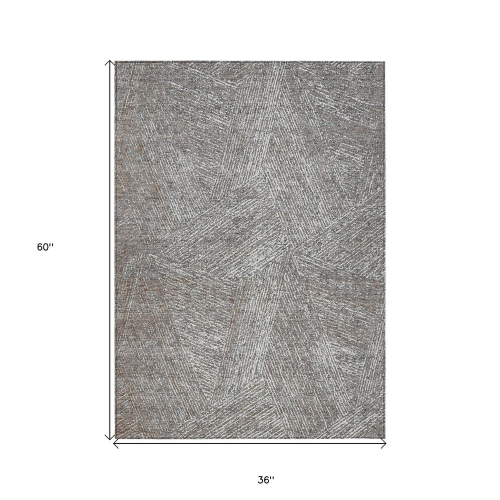 3' X 5' Gray Brown And Ivory Abstract Washable Indoor Outdoor Area Rug