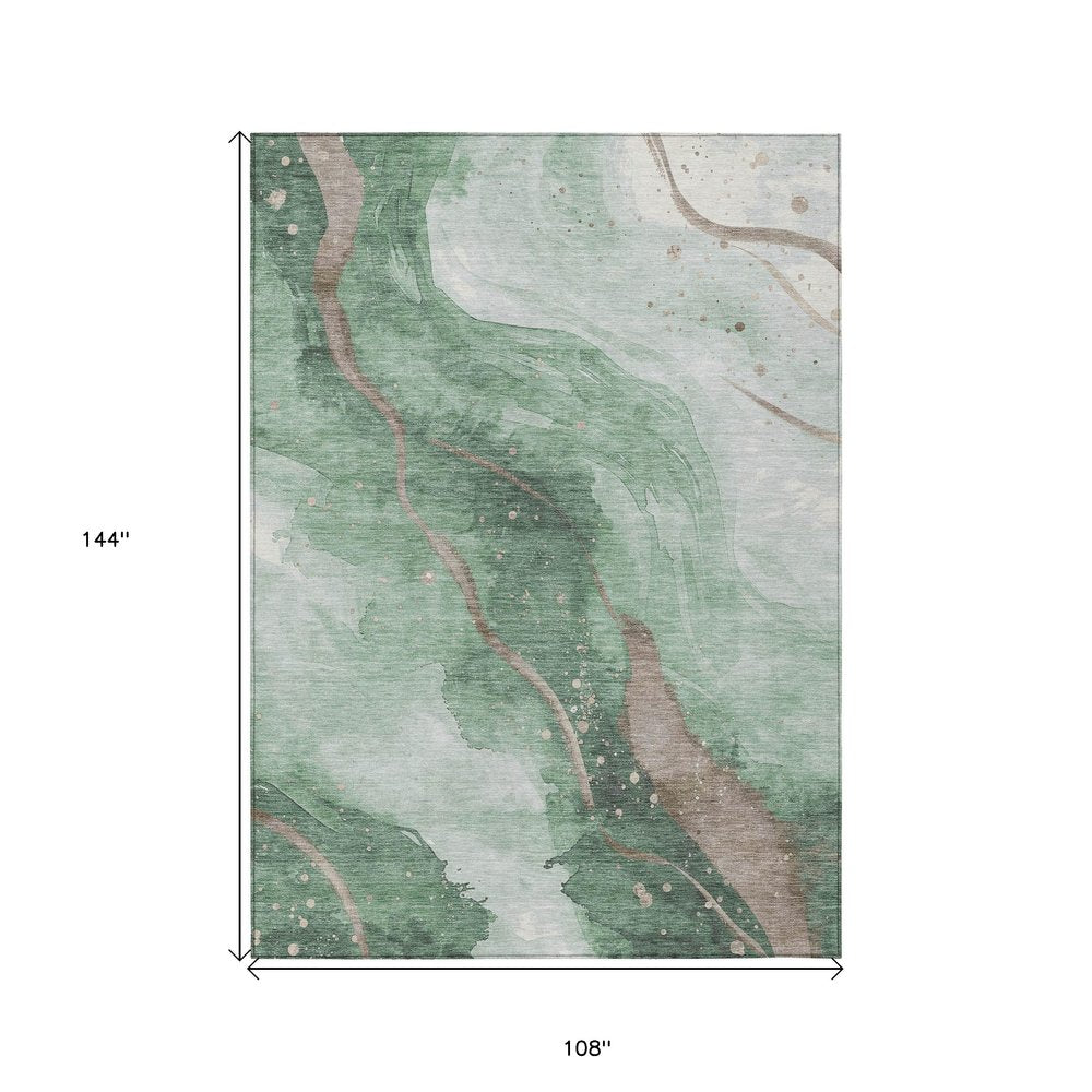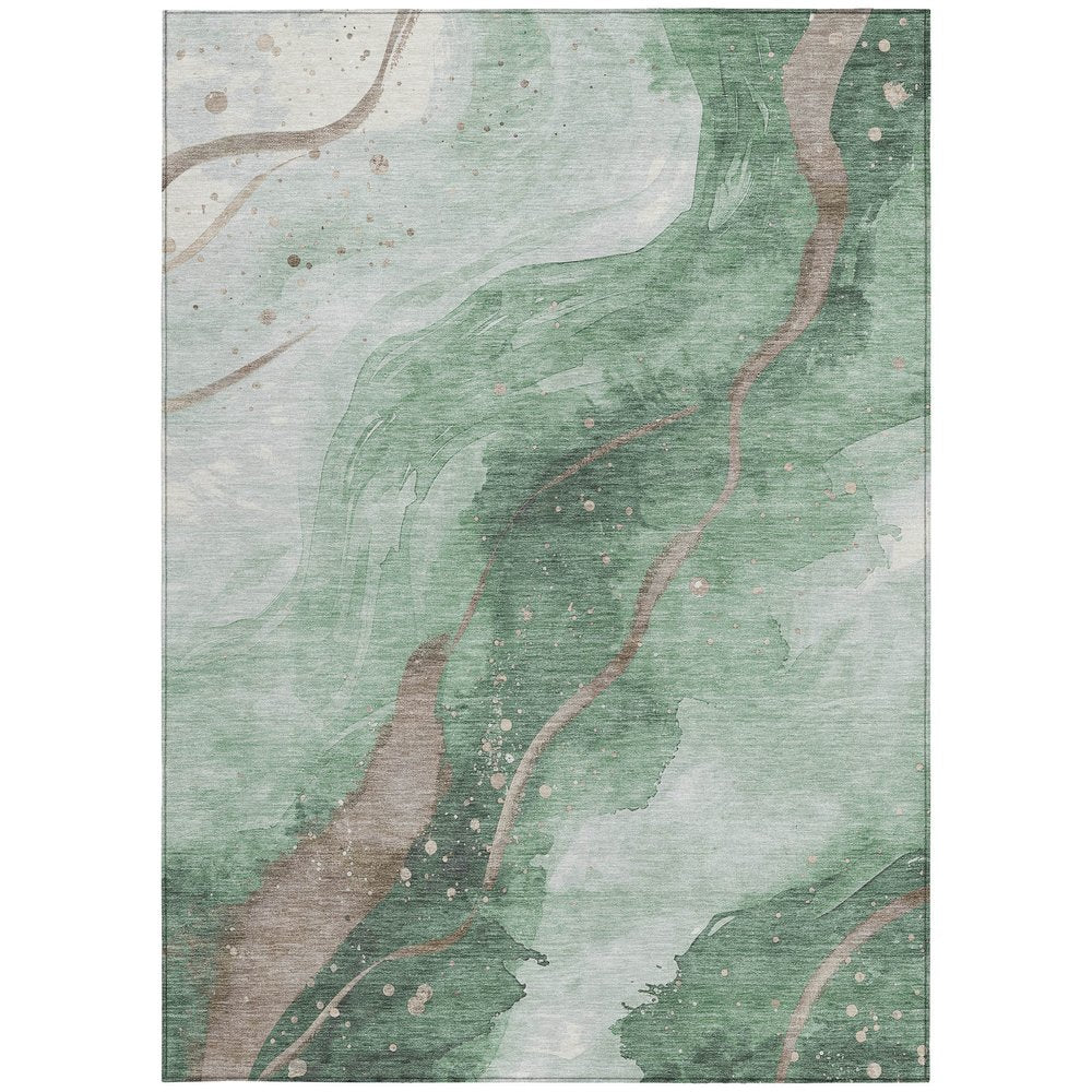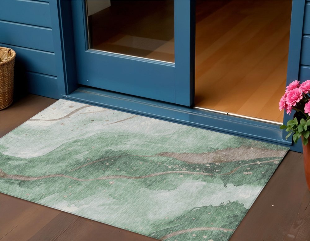 3' X 5' Green And Taupe Abstract Washable Indoor Outdoor Area Rug