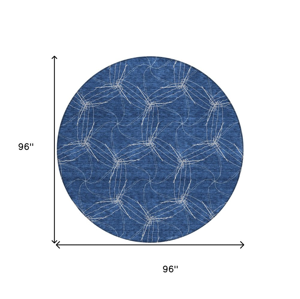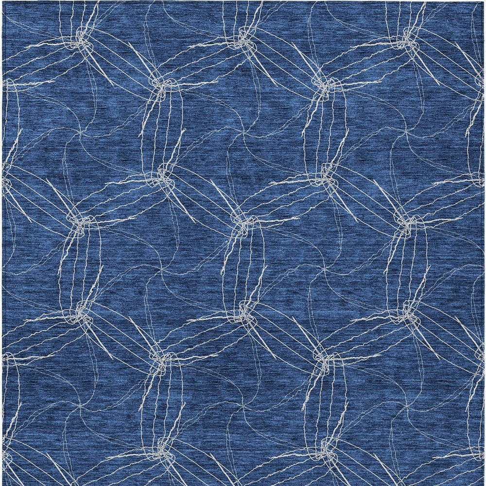 3' X 5' Navy Blue And Ivory Geometric Washable Indoor Outdoor Area Rug