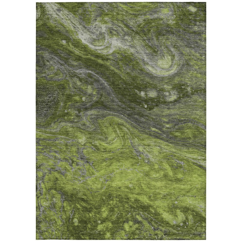 3' X 5' Olive Green And Lime Green Abstract Washable Indoor Outdoor Area Rug