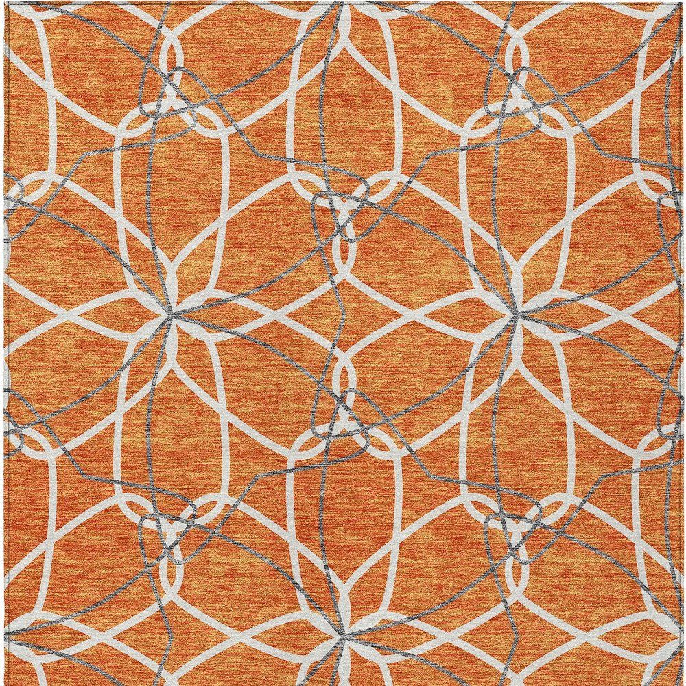 3' X 5' Orange And Ivory Geometric Washable Indoor Outdoor Area Rug