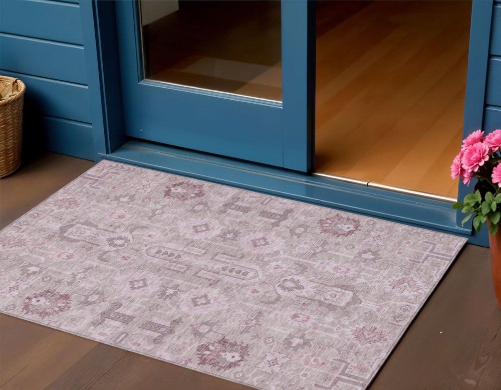 3' X 5' Pink Mauve And Blush Oriental Washable Indoor Outdoor Area Rug