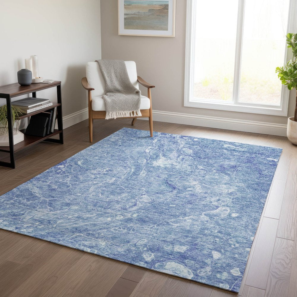 3' X 5' Sky Blue And Navy Blue Abstract Washable Indoor Outdoor Area Rug