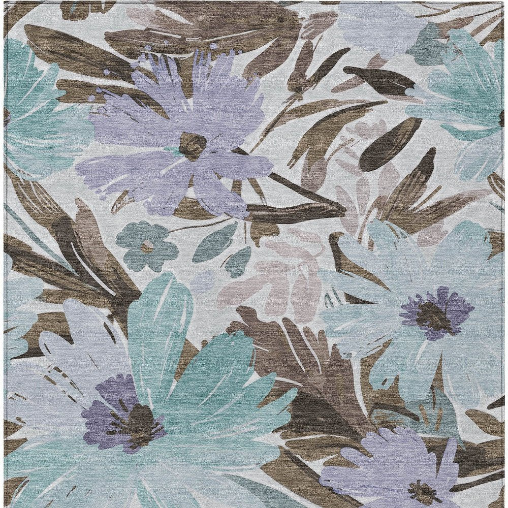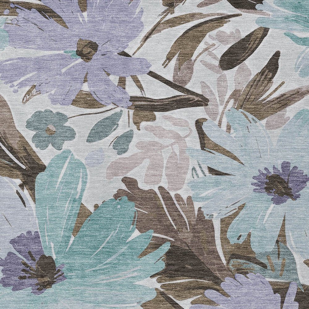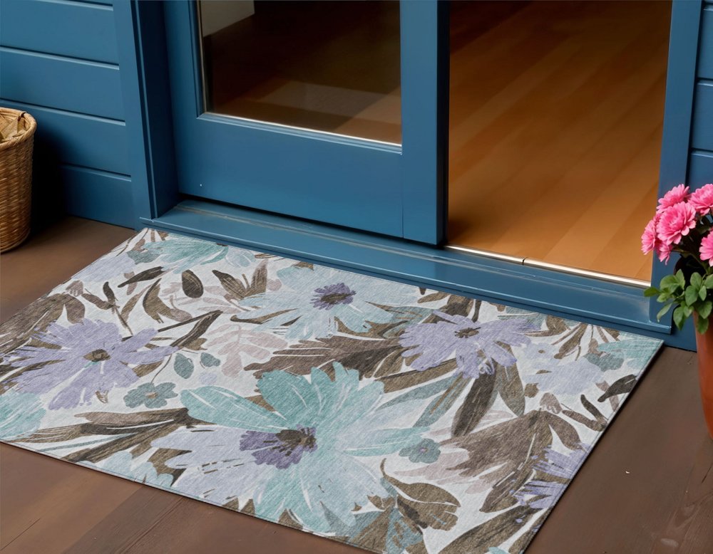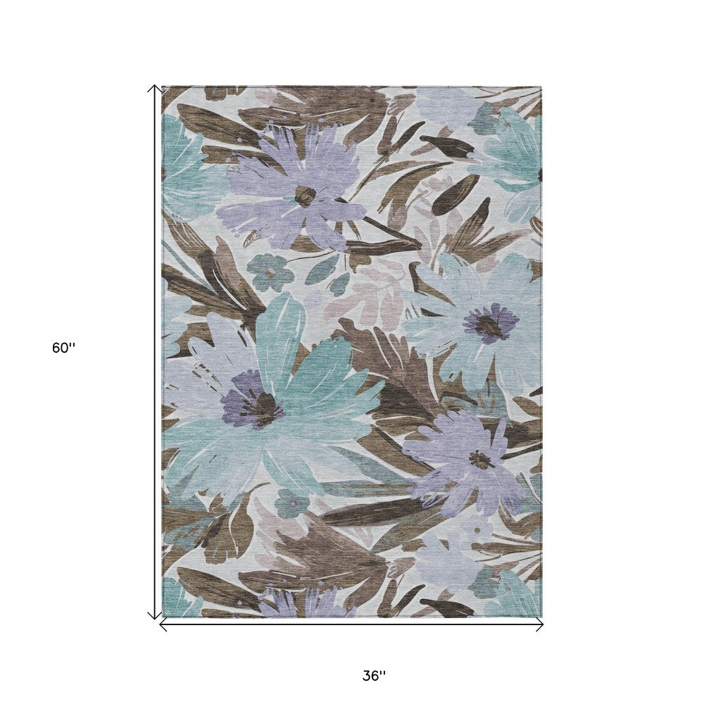 3' X 5' Taupe And Lilac Floral Washable Indoor Outdoor Area Rug