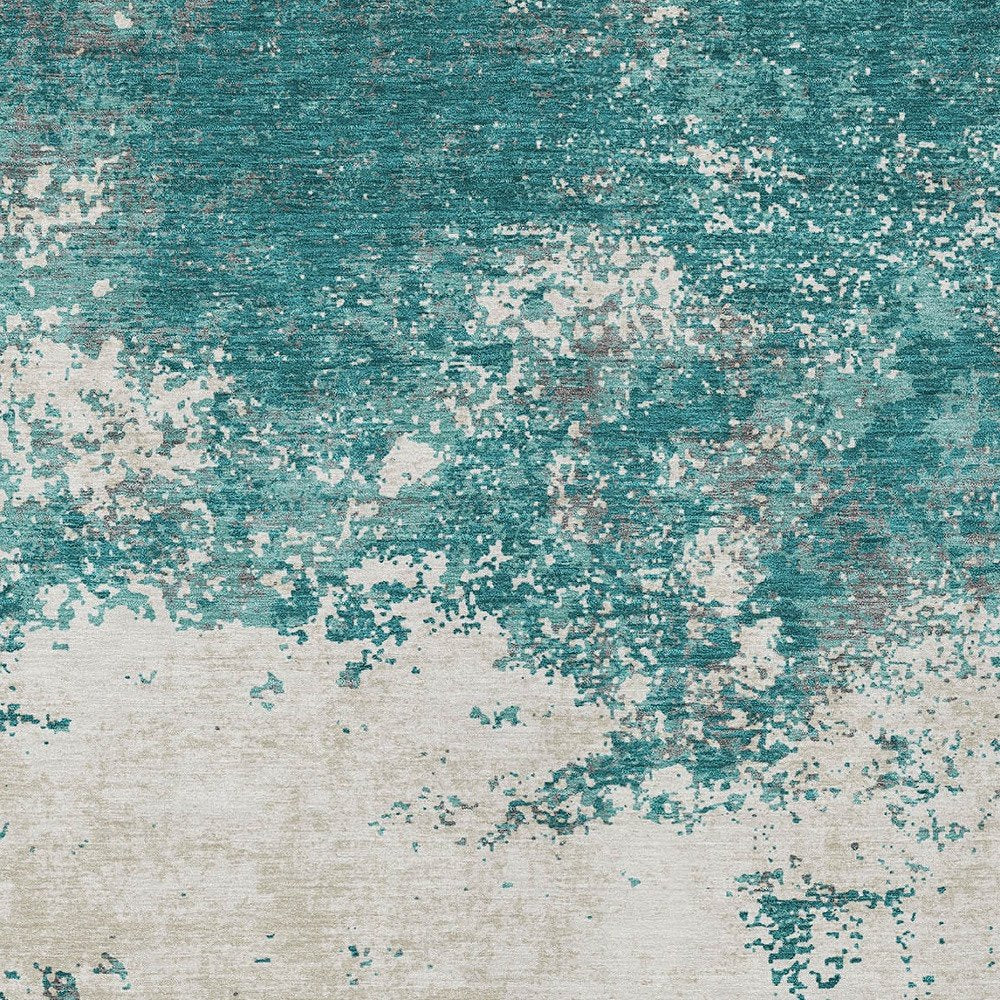3' X 5' Teal Blue Ivory And Gray Abstract Washable Indoor Outdoor Area Rug