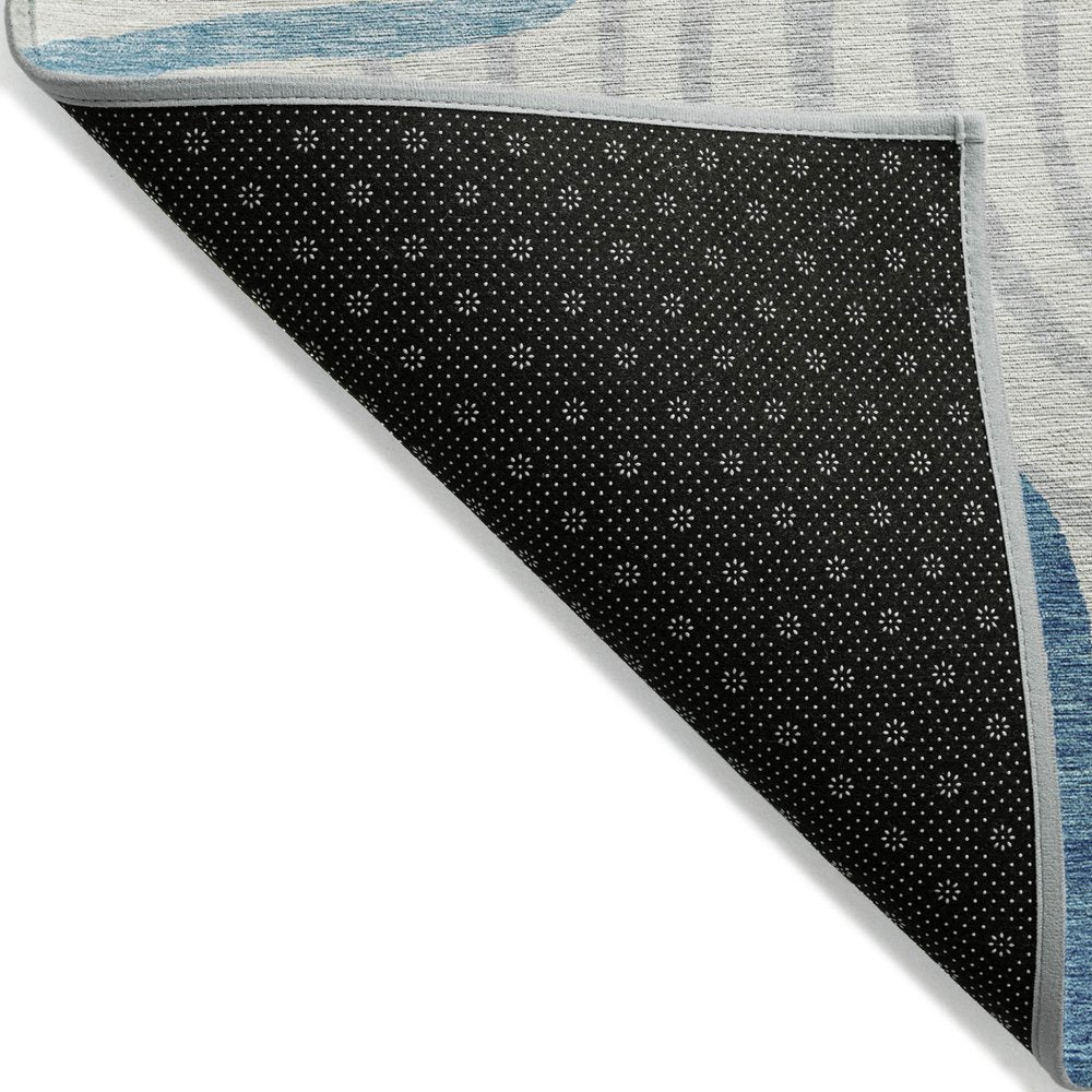 3' X 5' Teal Blue Ivory And Silver Abstract Washable Indoor Outdoor Area Rug