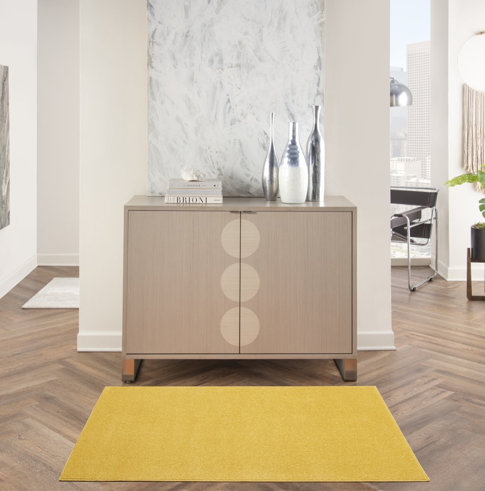 Add great coloration and comfortable texture to your space with this 3-foot x 5-foot yellow indoor outdoor area rug. Makes a great way to dress up your patio, porch, or poolside, but also works well as a durable and easy to maintain option in the kitchen, family room, or mudroom. Featuring a machine-made construction, this rectangle-shaped rug seamlessly blends style with functionality, making it an ideal choice for enhancing both indoor and outdoor settings. 36-inch h x 60-inch w x 0.25-inch d.