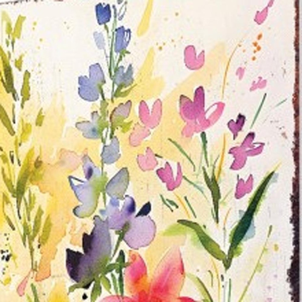 30" Green Pink White And Yellow Solid Wood Watercolor Floral Garden Stake