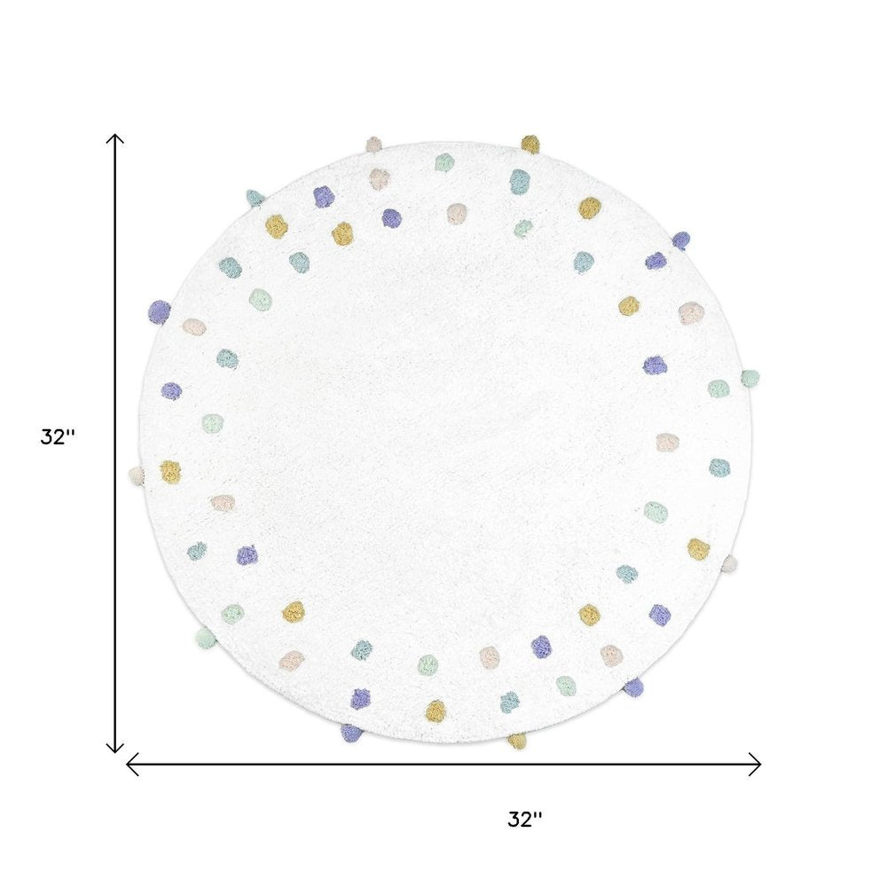32" Green Purple And White Cotton Round Polka Dots Bath Rug