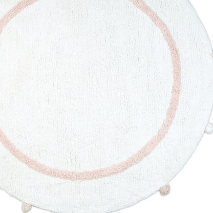 32" Light Pink And White Cotton Round Geometric Bath Rug