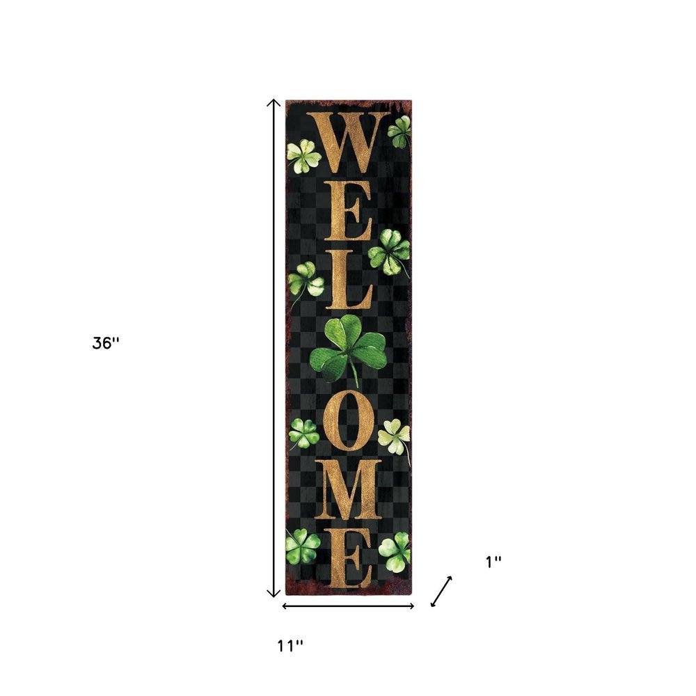 36" Black Gold And Green Solid Wood Welcome St Patrick's Day Porch Sign