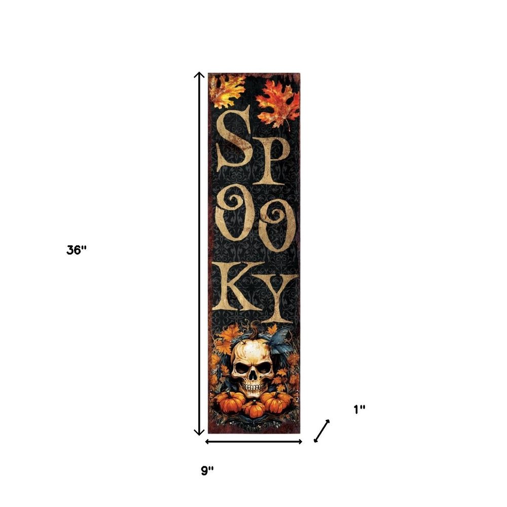 36" Black Gold And Orange Solid Wood Spooky Halloween Skull Porch Sign