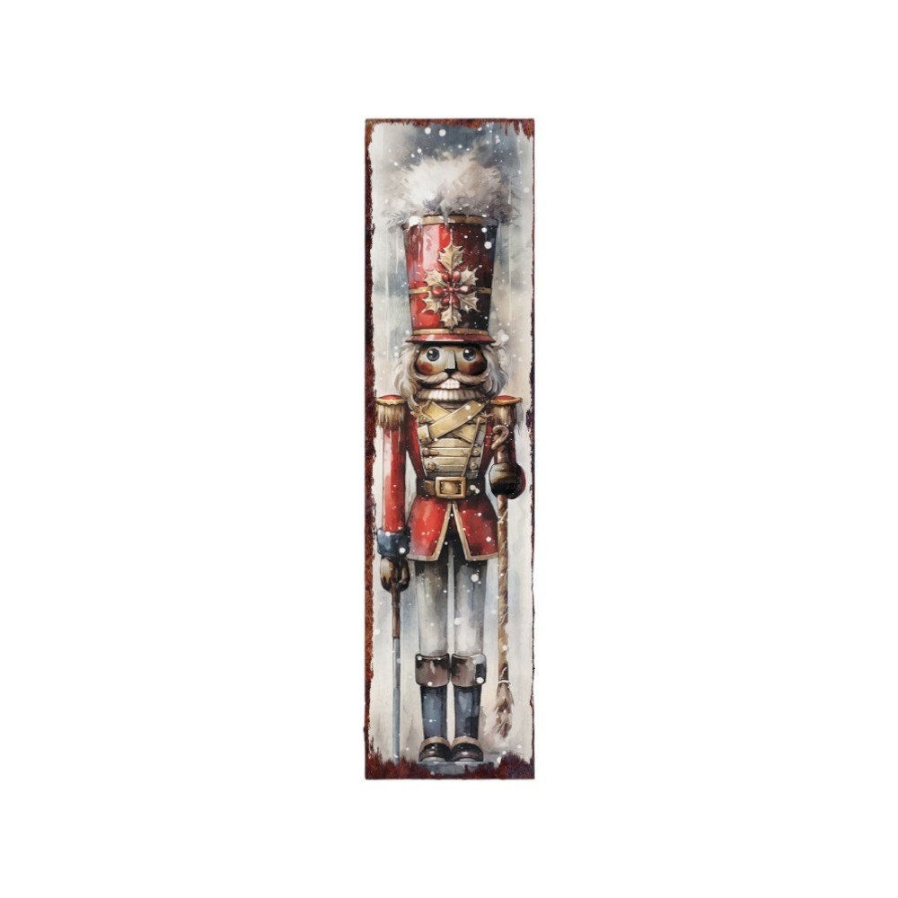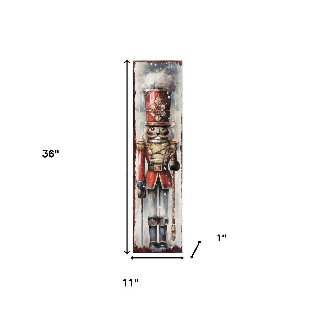 The 36-inch black red and white solid wood christmas nutcracker porch sign is a charming addition to your outdoor decor. Crafted from durable solid wood, this porch sign showcases a traditional design that complements festive themes. The striking black, red, and white color palette adds a vibrant touch to your entrance, welcoming guests with holiday cheer. Perfectly suited for the christmas season, this eye-catching accessory transforms your porch into a festive haven. Its quality material ensures longevity, allowing you to enjoy this delightful piece for many seasons to come. Embrace the spirit of the holidays and enhance your outdoor space with this enchanting nutcracker sign. 36.00-inch h x 11.00-inch w x 1.00-inch d.
