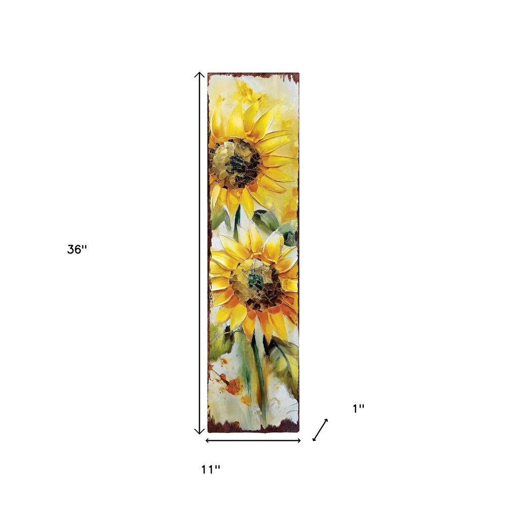 36" Brown Green And Yellow Solid Wood Sunflowers Porch Sign