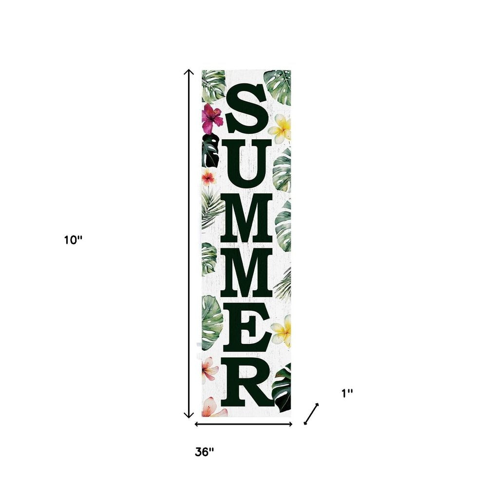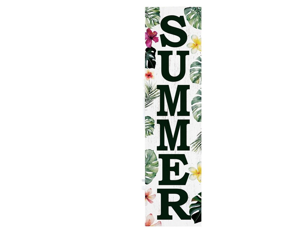 The 36-inch green pink and white solid wood tropical floral summer porch sign adds a charming touch to any outdoor space. Crafted from durable solid wood, this porch sign showcases a vibrant tropical floral design that perfectly complements summer decor. Its traditional style blends seamlessly with various outdoor aesthetics, making it a versatile choice for any porch or garden area. The delightful combination of colors brings a refreshing pop that enhances your outdoor ambiance. This accessory not only serves as a welcoming statement piece but also inviting guests to enjoy the warmth of the season. Perfect for enhancing your indoor or outdoor decor, this sign is a must-have for any summer gathering. 36.00-inch h x 10.00-inch w x 1.00-inch d.
