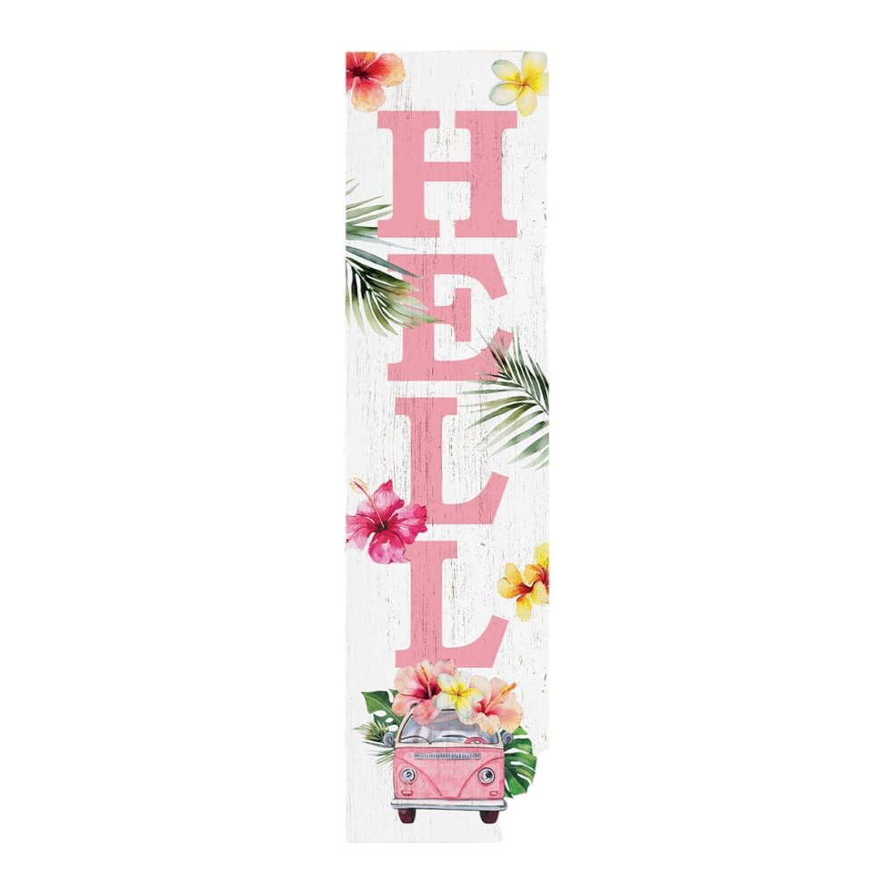 The 36-inch pink and white solid wood tropical floral hello porch sign brings a warm and inviting touch to your outdoor space. Crafted from durable solid wood, this porch sign promises lasting beauty and resilience against the elements. Embracing a cheerful tropical style, it effortlessly complements various spaces while adding a pop of color. The word "Hello" create a cheerful and welcoming atmosphere, making it perfect for greeting guests. This eye-catching accessory serves not only as decor but also as a charming way to express your hospitality. 36.00-inch h x 10.00-inch w x 1.00-inch d.