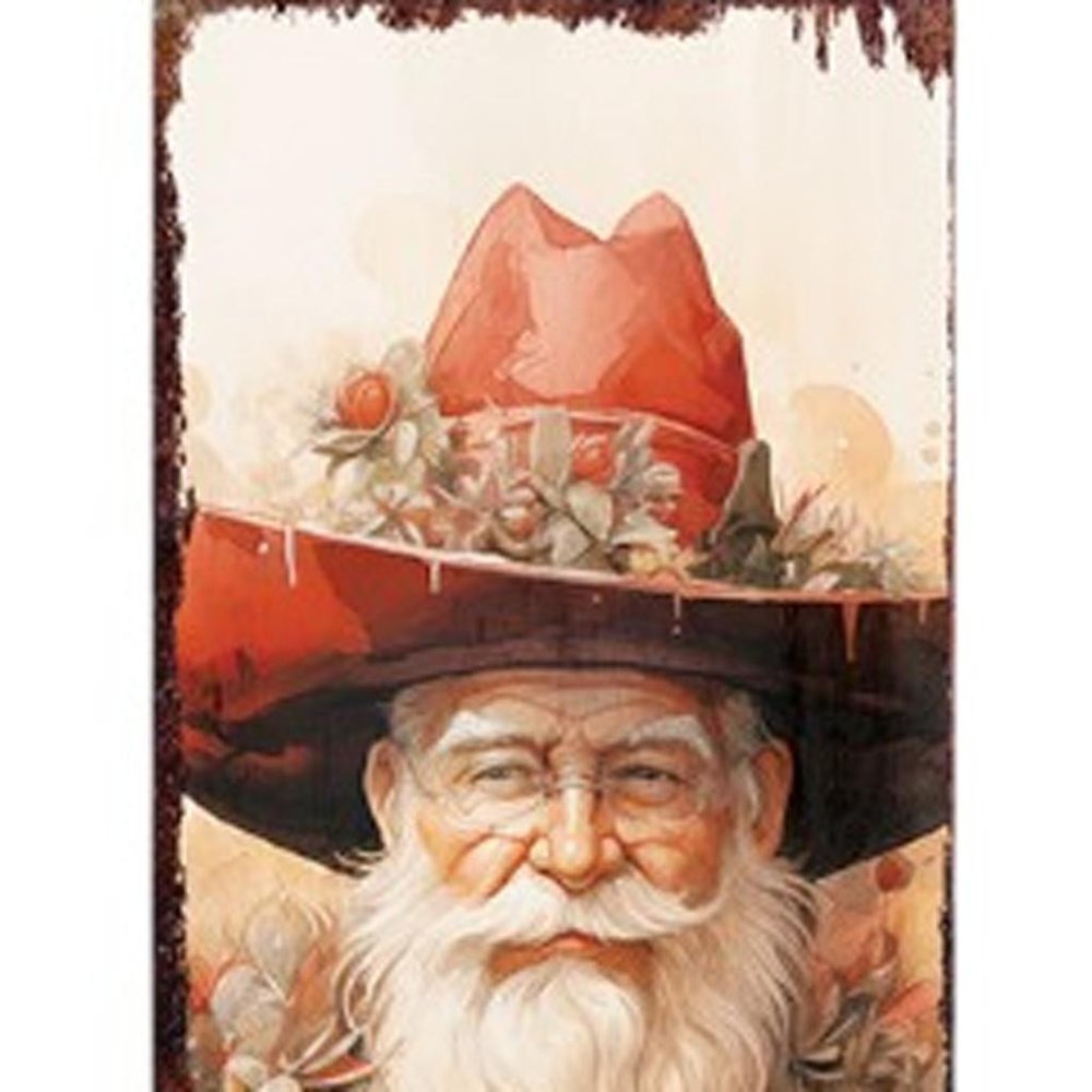 36" Red Green And White Solid Wood Christmas Cowboy Santa Porch Sign