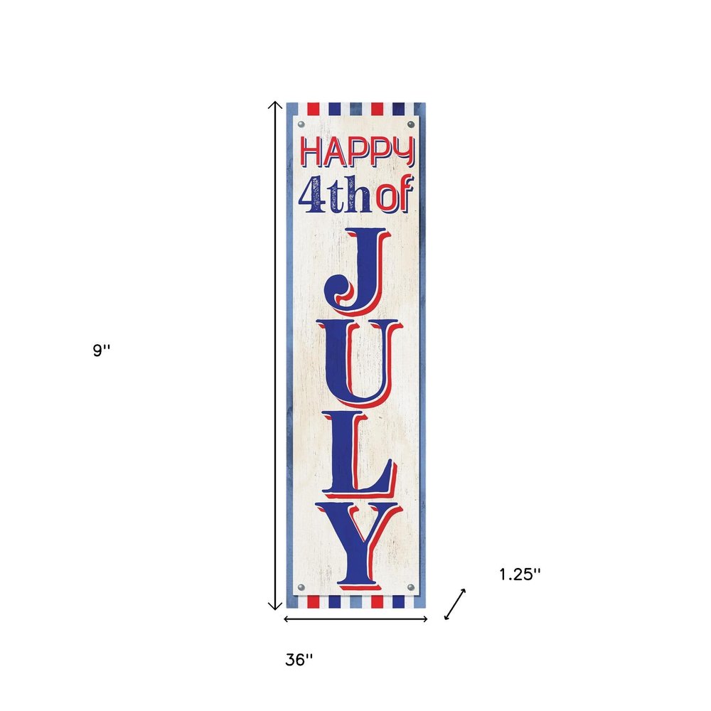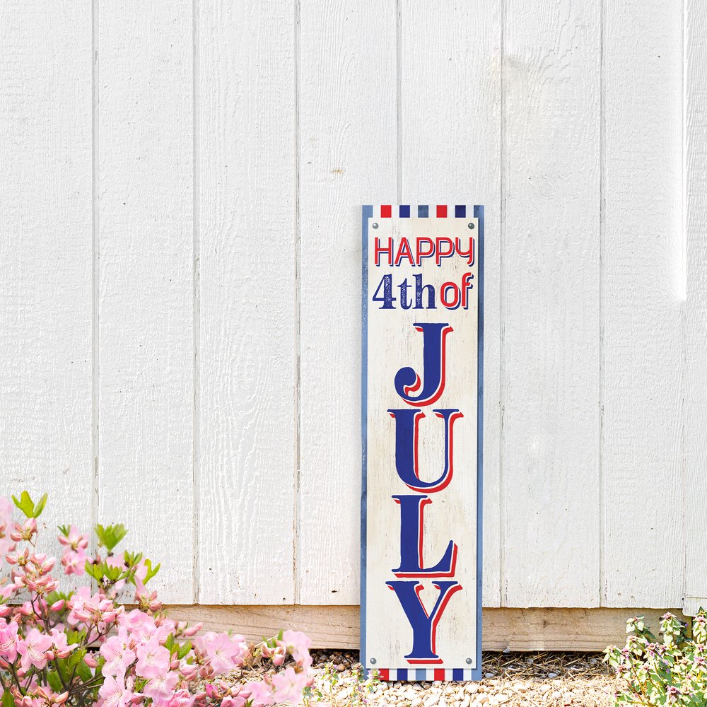 The 36-inch red white and blue solid wood happy july 4th july fourth fireworks porch sign is the perfect outdoor accessory for celebrating independence day. Crafted from durable solid wood, this traditional-style porch sign brings a festive charm to your summer decor. Vibrant colors make it an eye-catching addition to any porch or entryway. It enhances your outdoor space while embodying the spirit of patriotism and celebration. Ideal for welcoming guests during summer gatherings, this sign adds a warm touch to your home. Elevate your holiday decor and make a statement with this delightful piece that embodies the joy and excitement of july fourth festivities. 36.00-inch h x 9.00-inch w x 1.25-inch d.