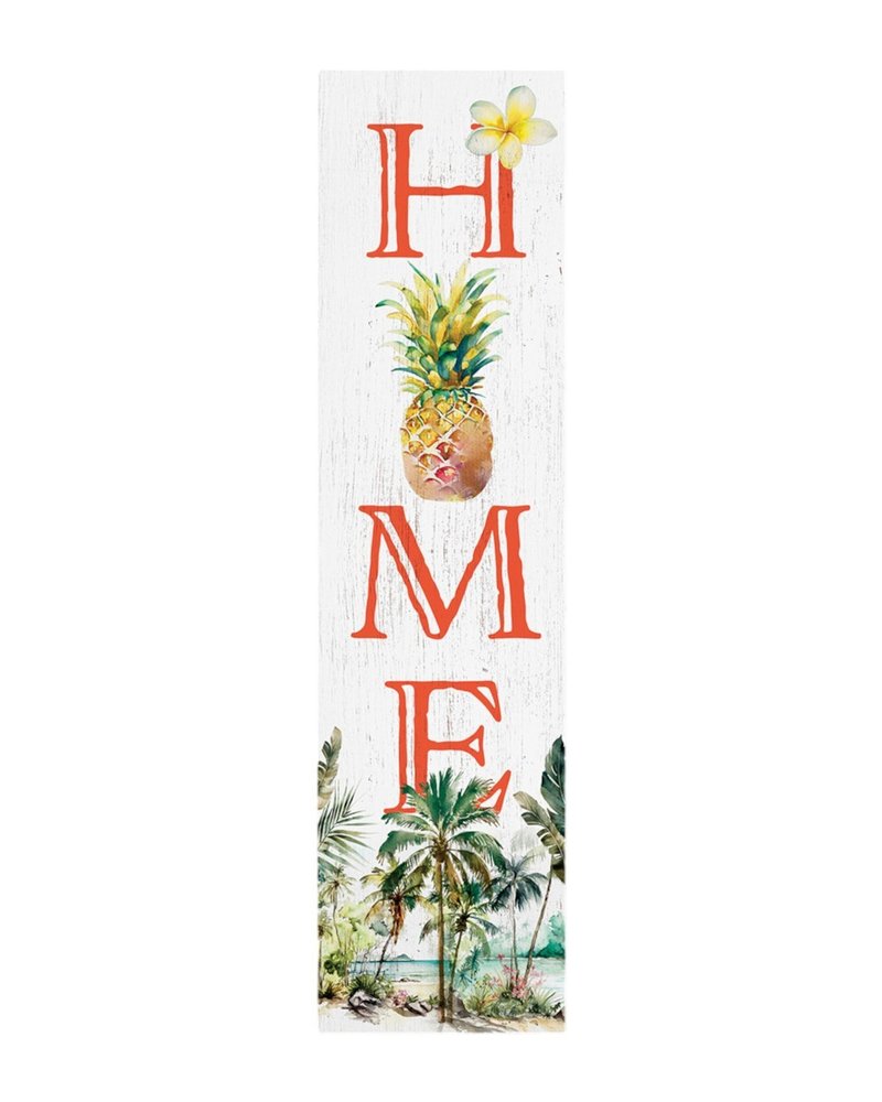 36" White Orange And Green Pineapple Home Solid Wood Porch Sign