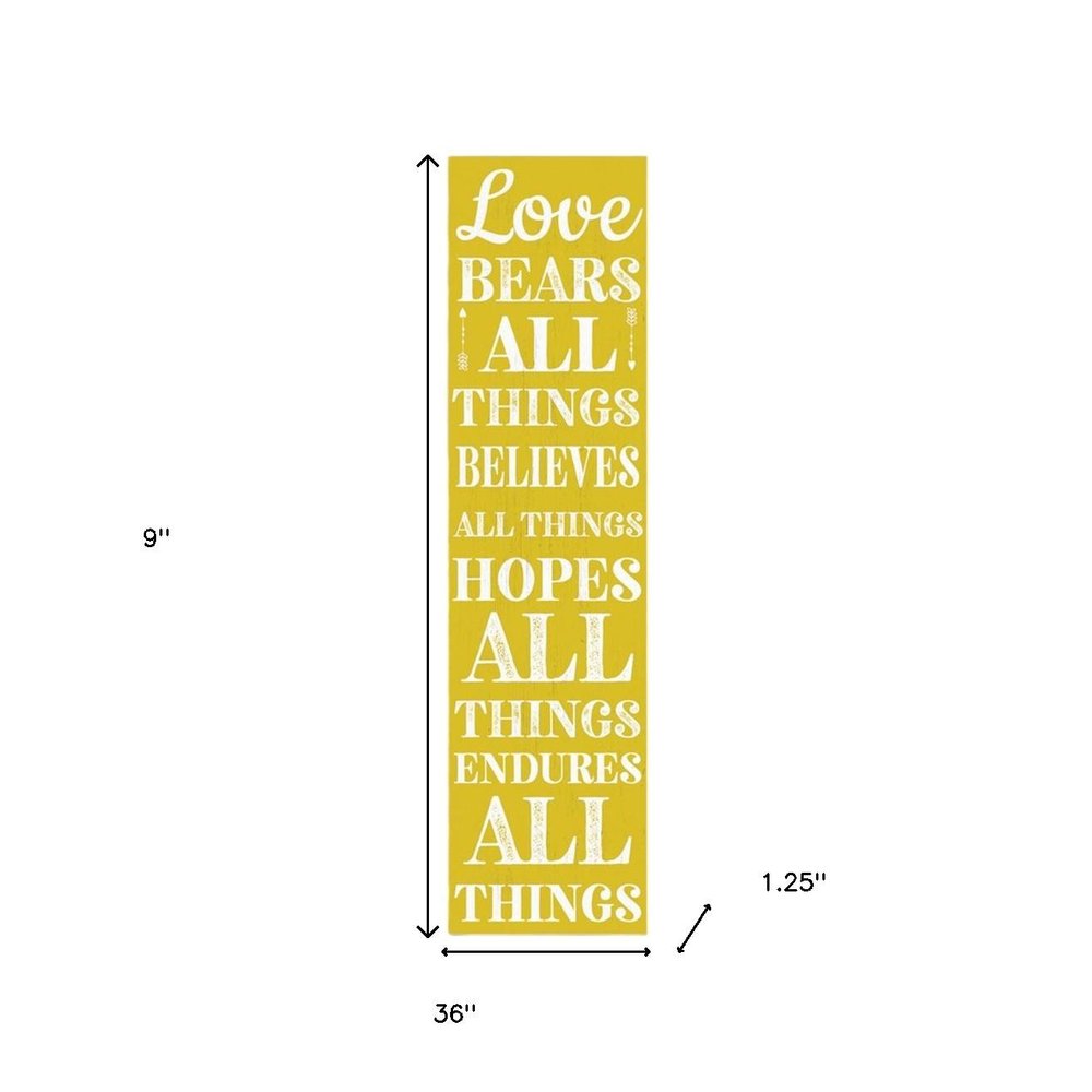 36" Yellow And White Solid Wood Love Religious Porch Sign
