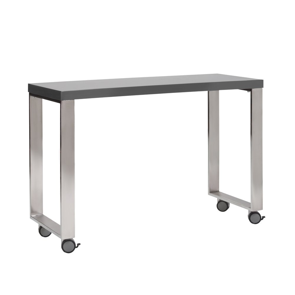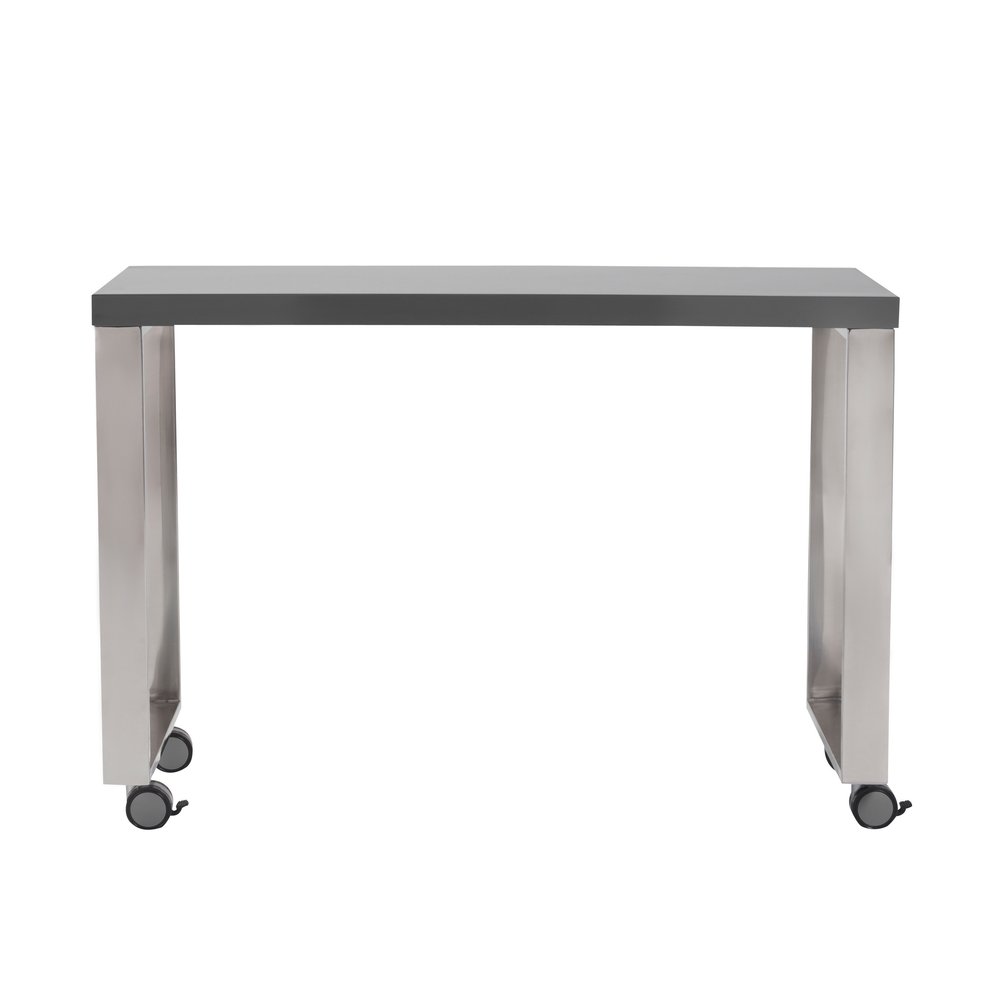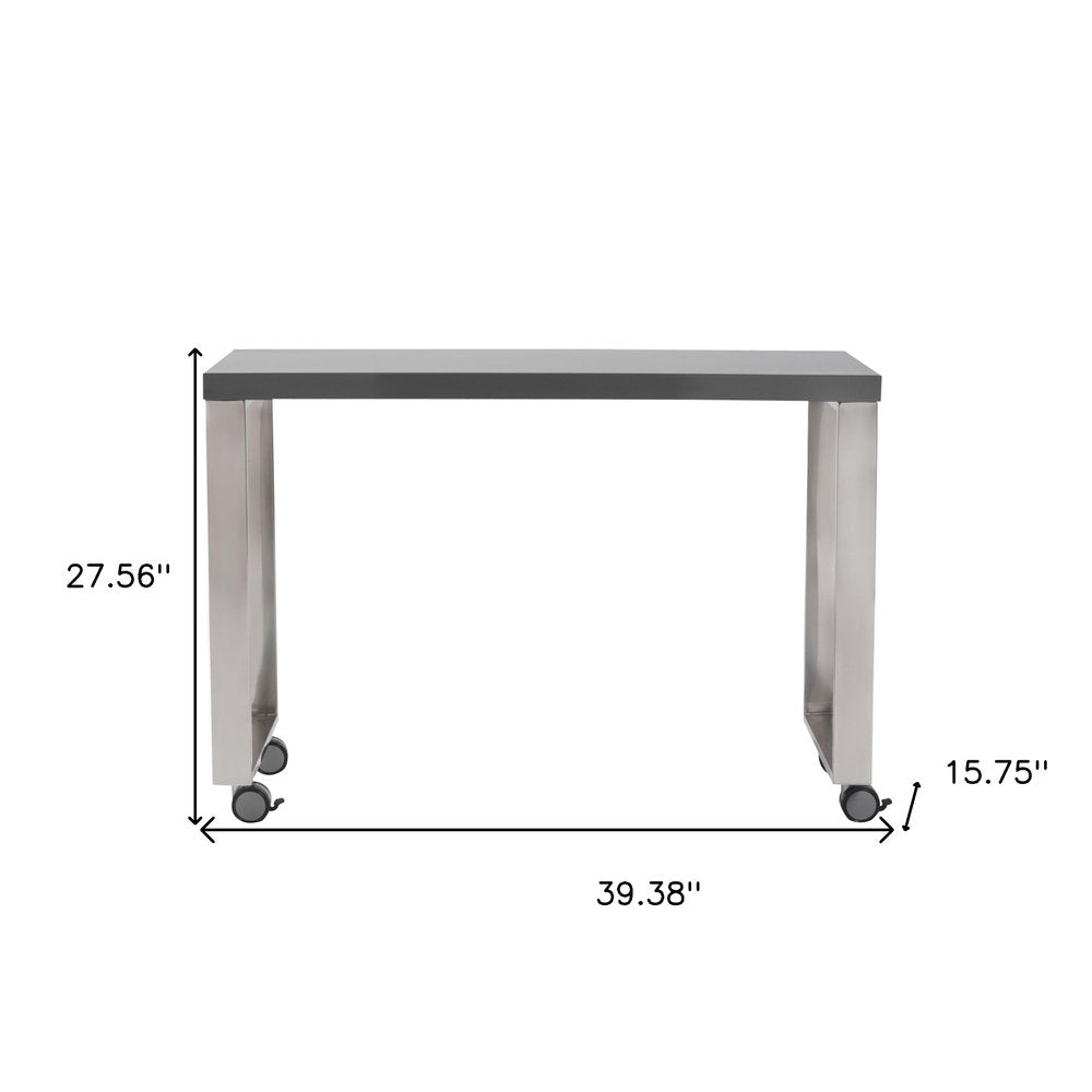 Bring this classic style 39-inch gray and silver wood and stainless steel rolling writing desk to your living room, home office or bedroom as a practical and fashionable accent. Designed to easily fit into most spaces, this classically shaped rectangular desk will turn your room into a productive workspace. Made for the ultimate in convenience and versatility, this desk can be assembled in either direction. Built to last, this sturdy desk is designed for comfort and efficiency for years to come. 27.56-inch h x 39.38-inch w x 15.75-inch d.