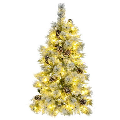 Add that special feeling to your space with this Christmas tree. This stunning artificial tree features an extra full shape, with 170 branch tips creating a luxurious look that enhances any holiday decor. The lush green and white needles add depth and cheer while the frosted branches give it a touch of winter charm. With instant power lights, set up is a breeze, ensuring you can enjoy the festivities without hassle. 120 warm LED lights not only shine but also feature 11 changing modes including blinking and twinkling functions. The included tree stand ensures stability, making this beautiful tree the perfect centerpiece for indoor celebrations. Decorate your home with ease and joy this season. 48.00-inch h x 31.50-inch w x 31.50-inch d.