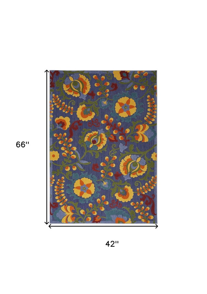 4' X 6' Blue Yellow And Green Indoor Outdoor Area Rug
