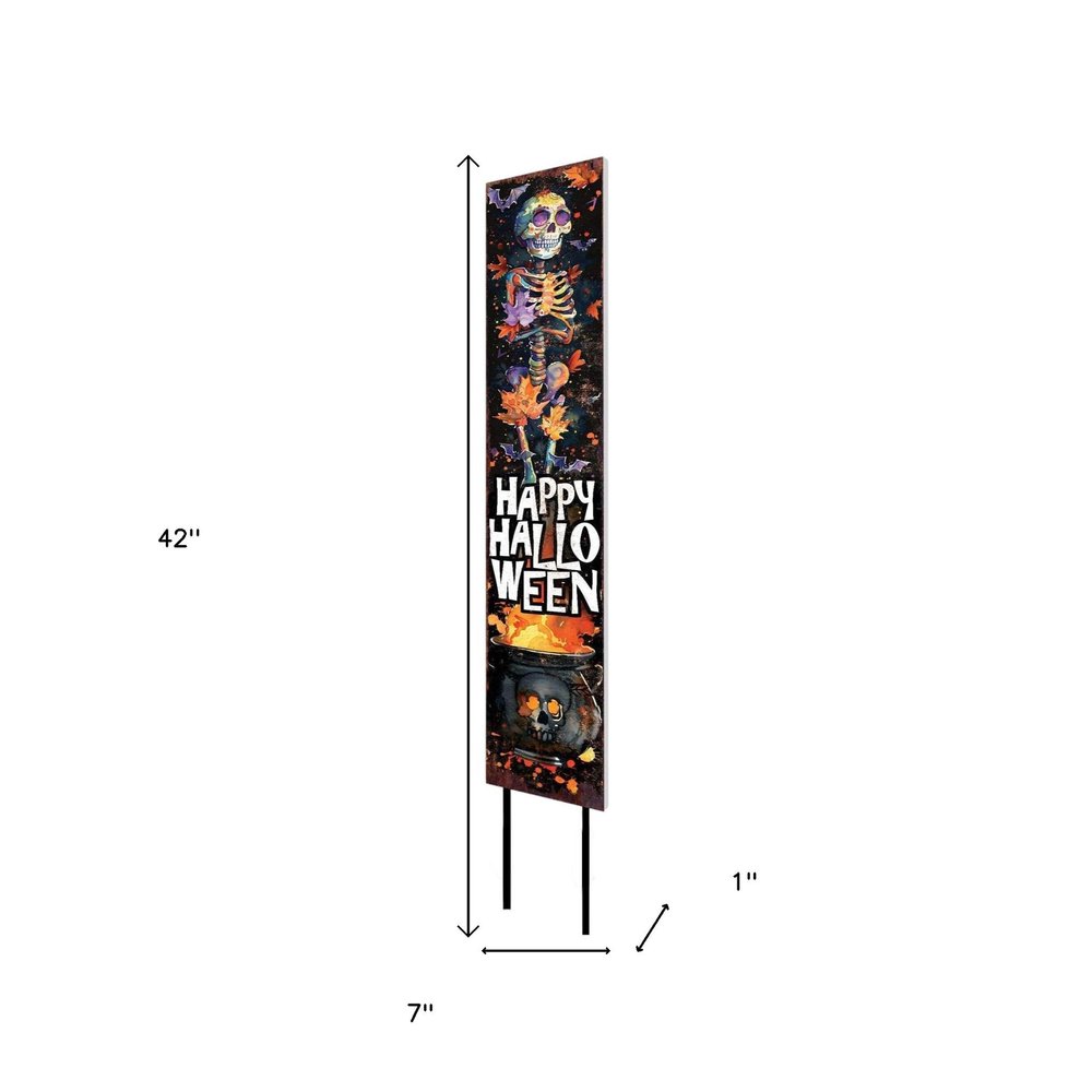 42" Black And Orange Solid Wood Skeleton Happy Halloween Garden Stake
