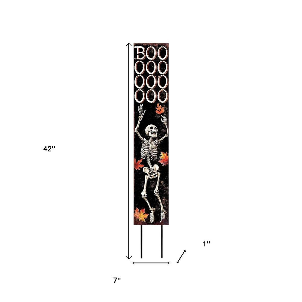 42" Black Orange And White Solid Wood Boo Halloween Skeleton Garden Stake