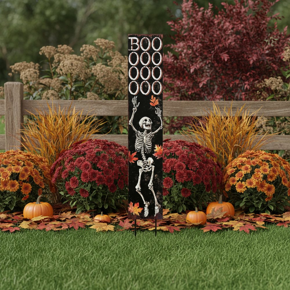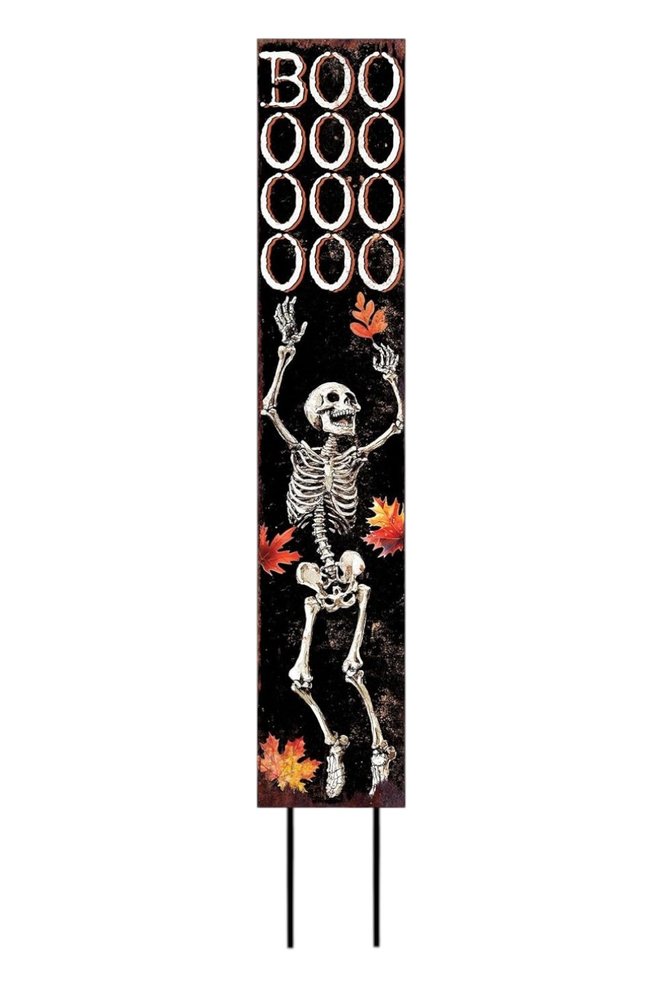 The 42-inch black orange and white solid wood boo halloween skeleton garden stake is the perfect accessory to elevate your outdoor decor. Crafted from durable solid wood, this garden stake adds a traditional touch to your halloween celebrations. Its vibrant black, orange, and white color scheme captures the essence of fall, creating a festive atmosphere in your garden. Designed specifically for halloween, it serves as an eye-catching focal point that delights both children and adults alike. Enhance your outdoor space with this charming and playful decoration, ensuring your home stands out during the spooky season. This garden stake promises to bring joy and excitement to all who visit, making it a must-have for your seasonal displays. 42.00-inch h x 7.00-inch w x 1.00-inch d.