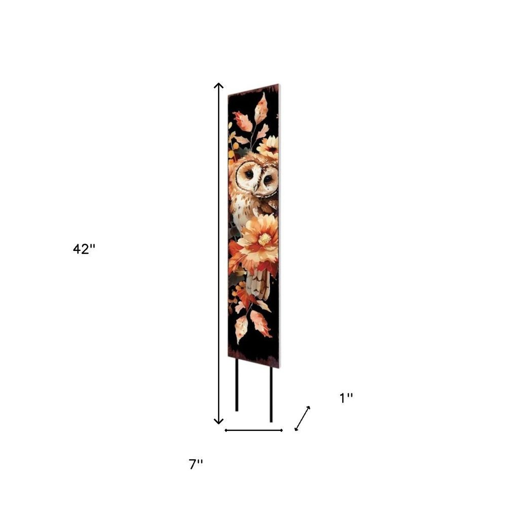 42" Black Tan Off White And Orange Floral Bouquet Solid Wood Birds Garden Stake